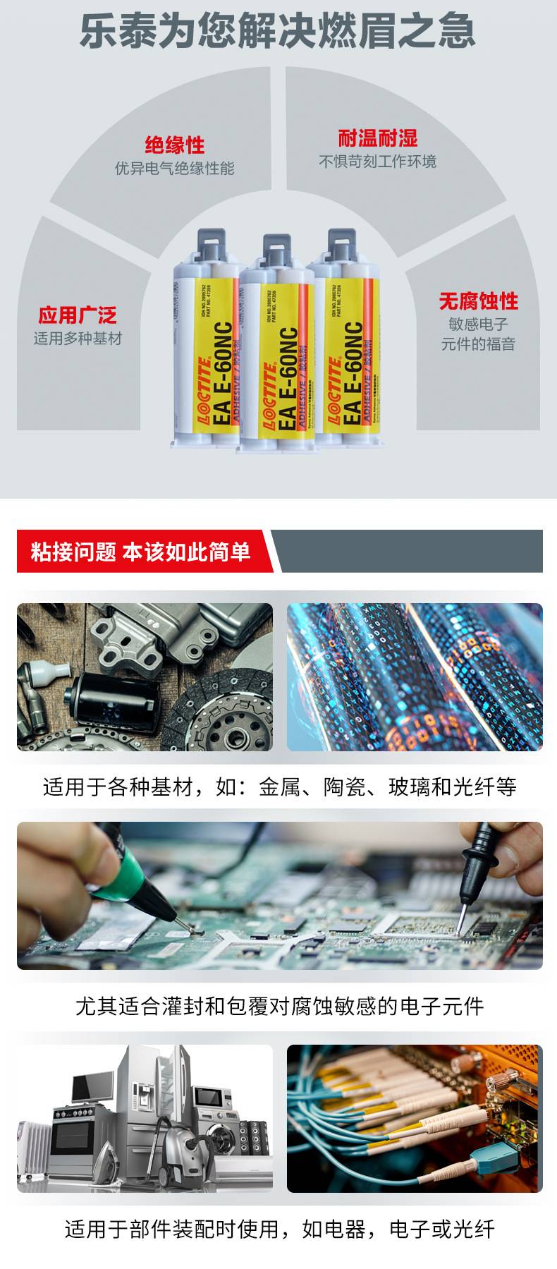 樂泰®產(chǎn)品Hysol® E-60NC 是一種可流動的工業(yè)級環(huán)氧樹脂灌封化合物,具有延長的使用壽命。 一旦將兩組分混合,環(huán)氧樹脂就會在室溫下固化成堅硬的黑色包封劑,這種材料對PC 板和電子組裝件上的金屬元件無腐蝕作用。完全固化后,環(huán)氧樹脂可以耐大多數(shù)化學(xué)藥品和溶劑,是一種極好的電絕緣體。耐高溫可達到 180℃。