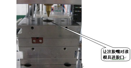 5)手動合模壓緊模具,讓膠槍頭對準(zhǔn)模具進膠口;